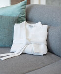 Traditional, soft, textured waffle robe with deep patch pockets and kimono styling.