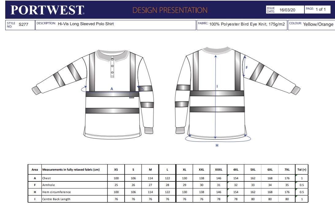 PortWest Hi-Vis Polo Shirt L/S S277