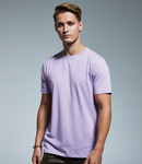 60% organic combed ringspun cotton/40% polyester. Soft cotton faced fabric. Fashion fit. Ribbed collar. Taped neck. Side seams. Twin needle stitching. Unbranded size label at neckline.