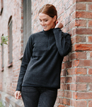 75% recycled polyester/25% polyester. Sweater knit fleece with brushed inner. Brushed tricot lined collar, cuffs and hem. Low profile zip neck. Raglan sleeves. Articulated shoulders. Left sleeve zip pocket. Self colour bound cuffs and hem. Flatlock stitched seams.