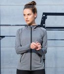 Brushed back fleece. Raglan sleeves. Grown on hood with stretch bound opening. Taped neck. Full length zip with chin guard and inner zip guard. Contrast inserts on underarms and sides.